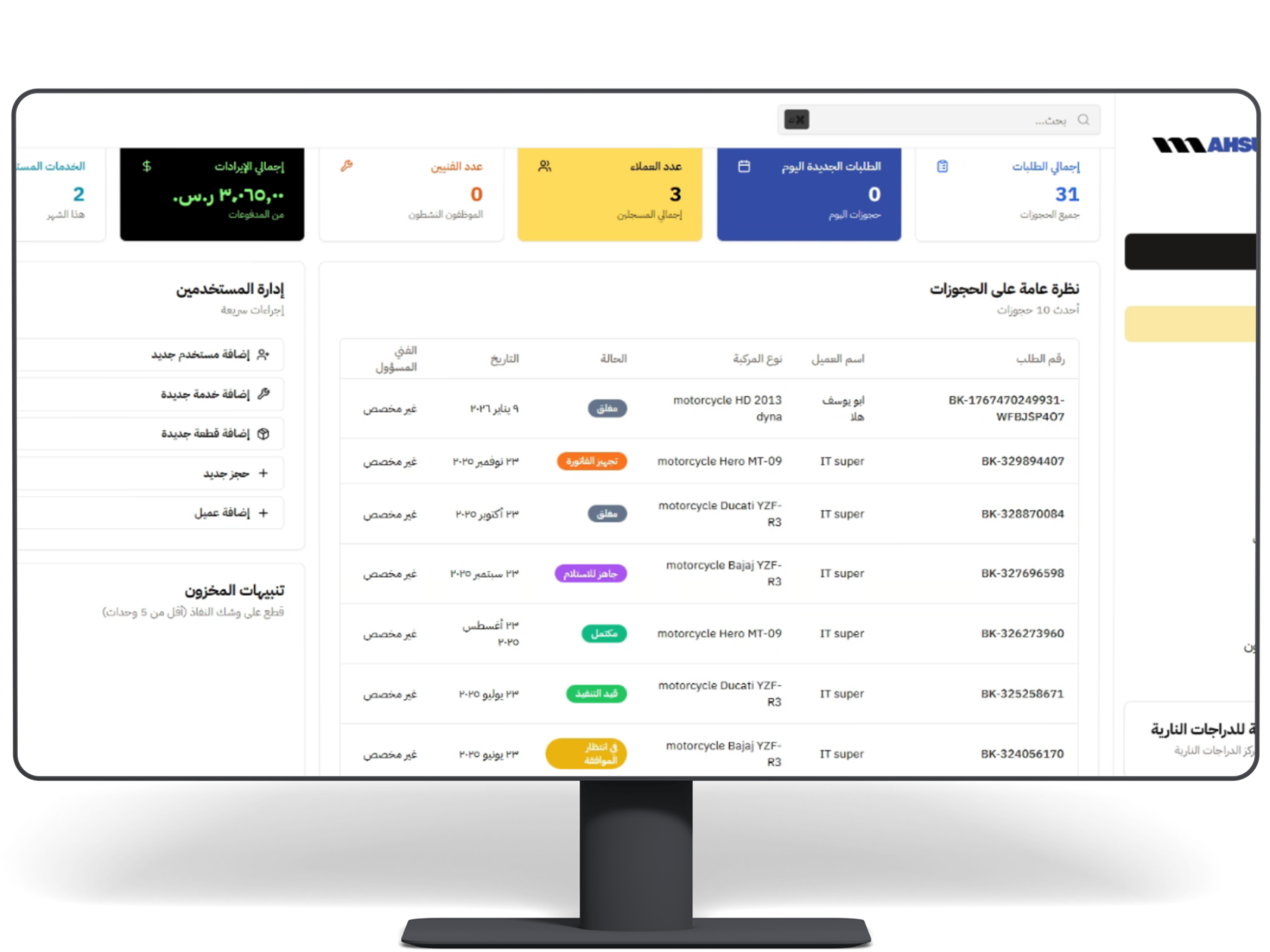 حوّل ورشتك من إدارة عشوائية إلى نظام رقمي منظم، راقب الصيانة، العملاء، والفواتير في مكان واحد، وازد أرباحك بثقة ووضوح.
